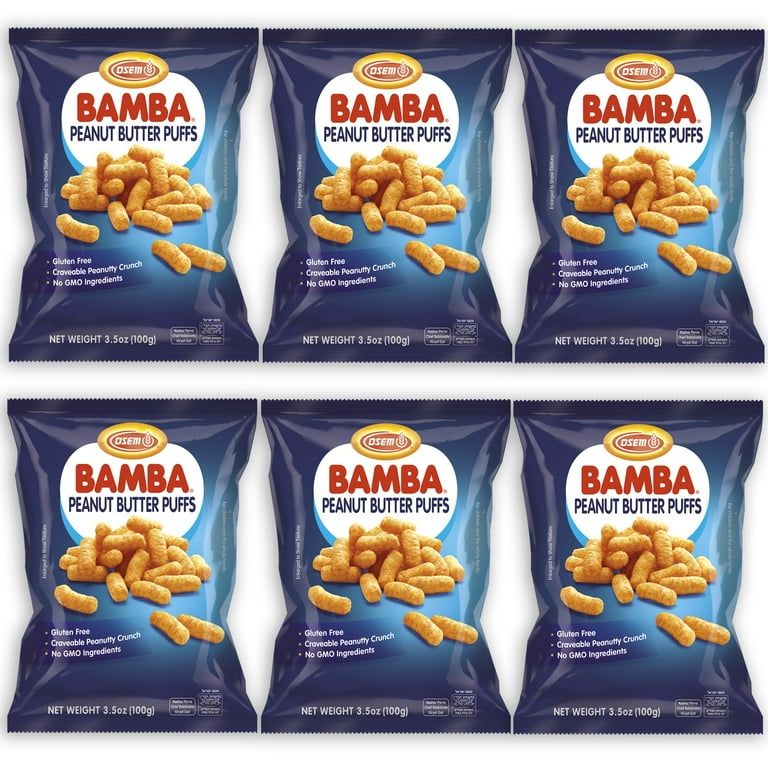 Enjoy the irresistible taste of Osem Bamba Peanut Snacks, a classic Israeli favorite made with 50% real peanuts for a rich, nutty flavor and a perfectly airy crunch. These all-natural peanut puffs are a good source of plant-based protein and healthy fats, making them a delicious and nutritious snack for the whole family. Packed with essential vitamins and minerals like vitamin E and B-complex, Bamba is not just tasty but also a smart snacking choice. Each family pack includes 16 individual 0.7oz bags, perfect for on-the-go munching, school lunches, or sharing at home. No artificial flavors, no preservatives—just pure peanut goodness in every bite!